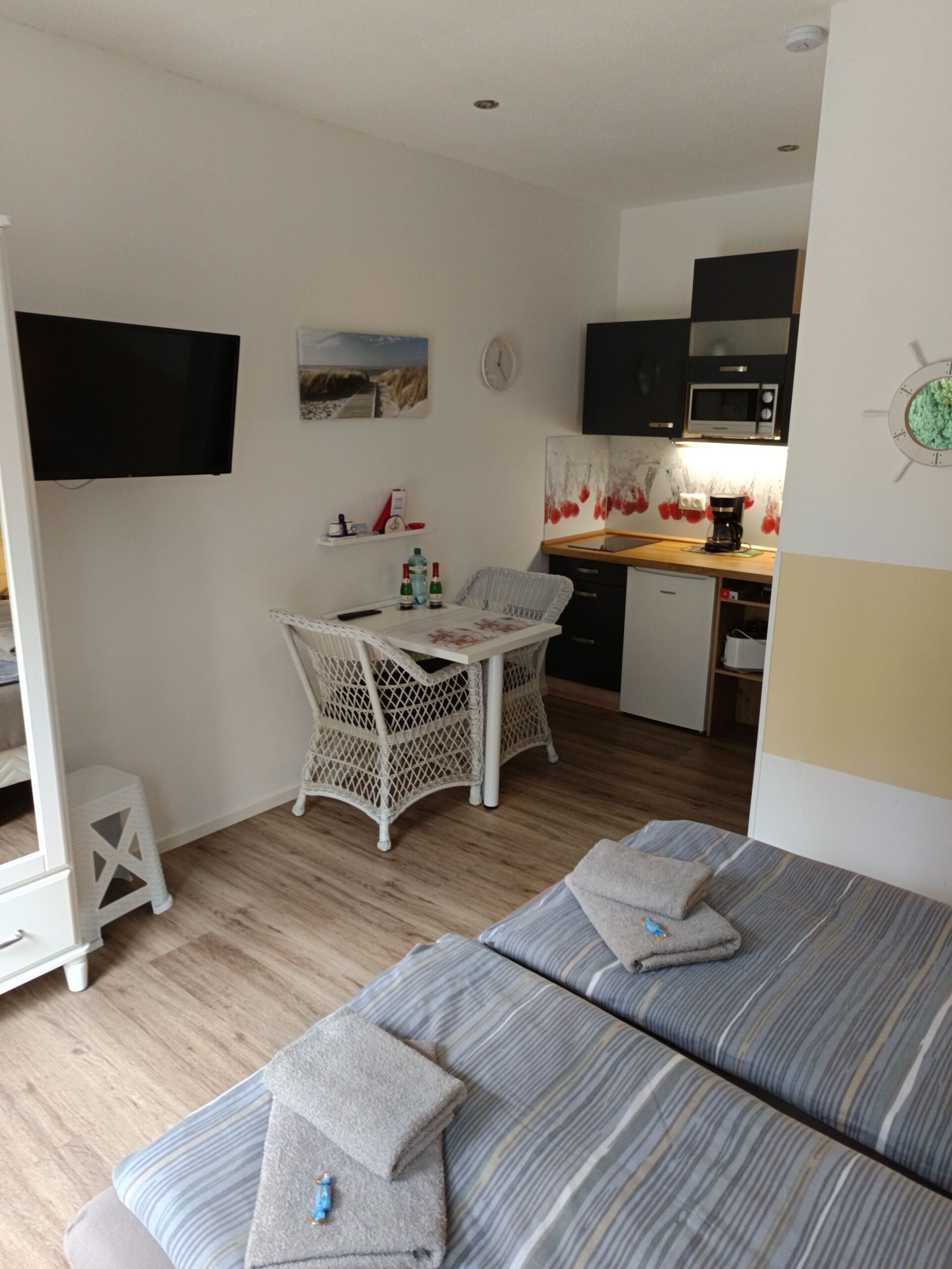 Alle Wohneinheiten sind hochwertig ausgestattet mit Kühlschrank, Geschirrspüler, Kaffeemaschine, Mikrowelle sowie Backofen – damit Sie Ihren Urlaub ganz nach Ihrem Rhythmus gestalten können.